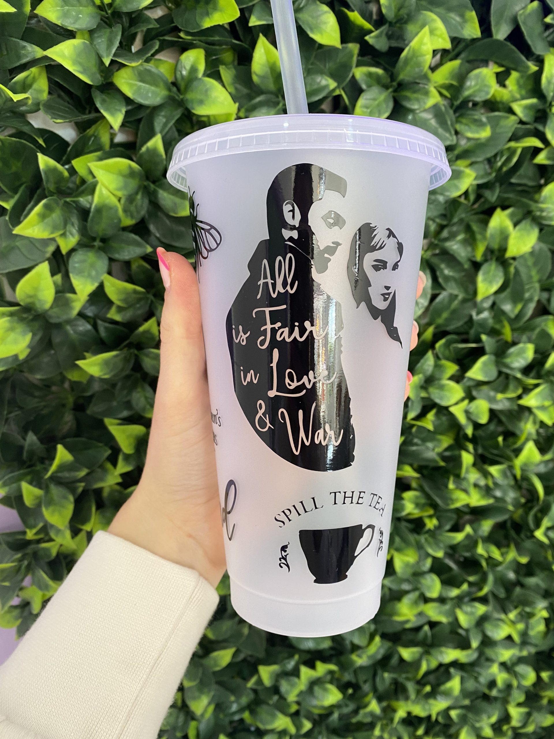This Bridgerton Cold Cup is branded with a design inspired by the TV show. Perfect to gift your Best Friend as a birthday present. The reusable coffee cup is customised with the name of your choice.